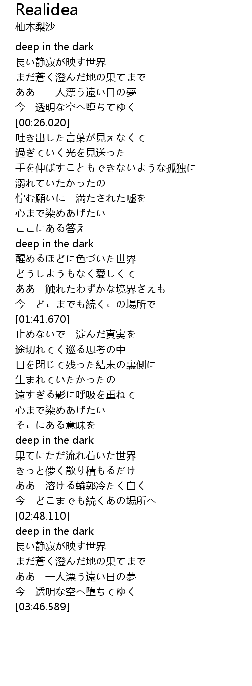 | [03:37.910] | 今 透明な空へ堕ちてゆく |