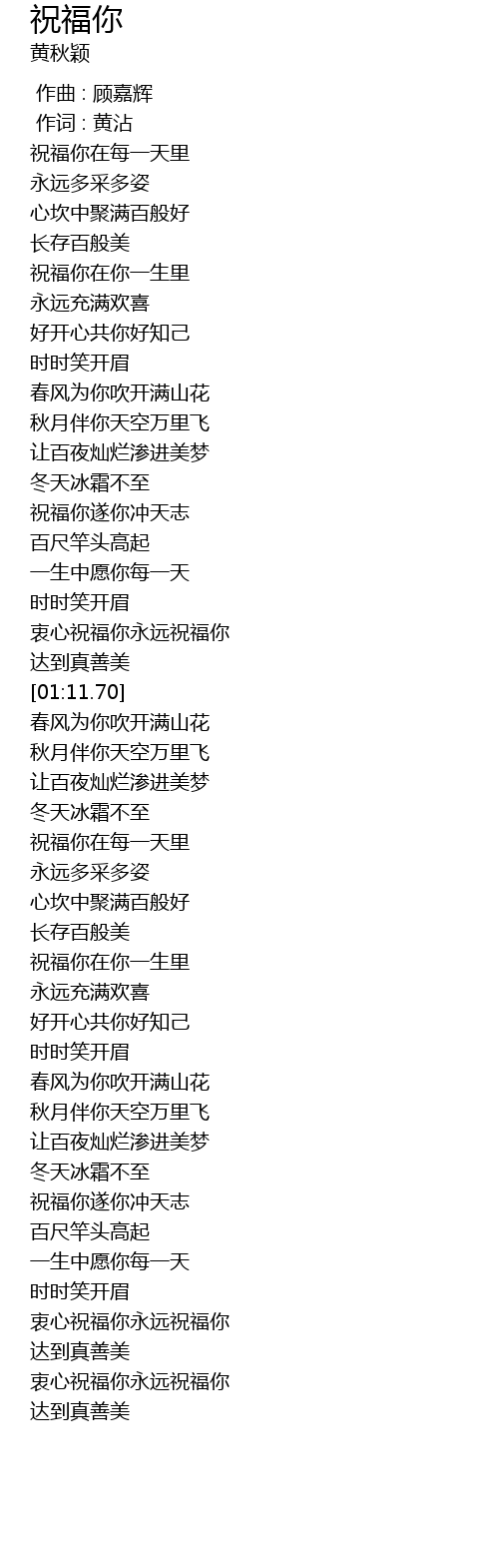 | [01:05.30] | 衷心祝福你永远祝福你 |