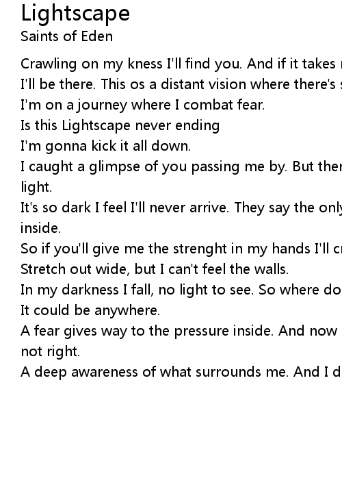 It's so dark I feel I'll never arrive. They say the only way out is to feel it inside. |