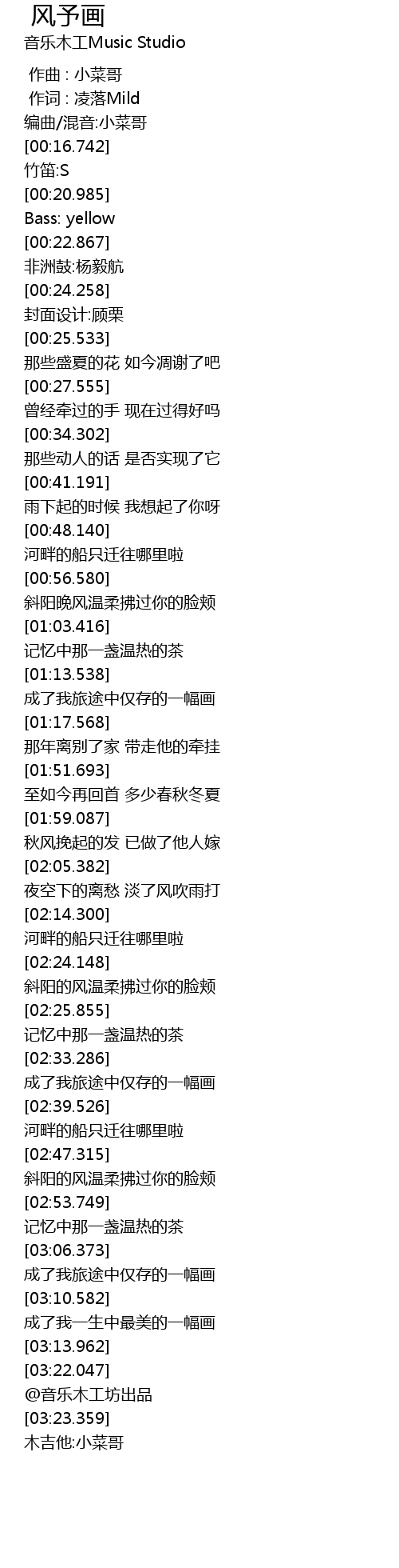 | [02:03.563] | 秋风挽起的发 已做了他人嫁 |