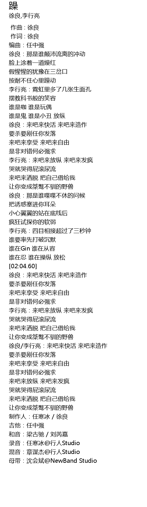 | [02:26.22] | 李行亮:来吧来放纵 来吧来发疯 |