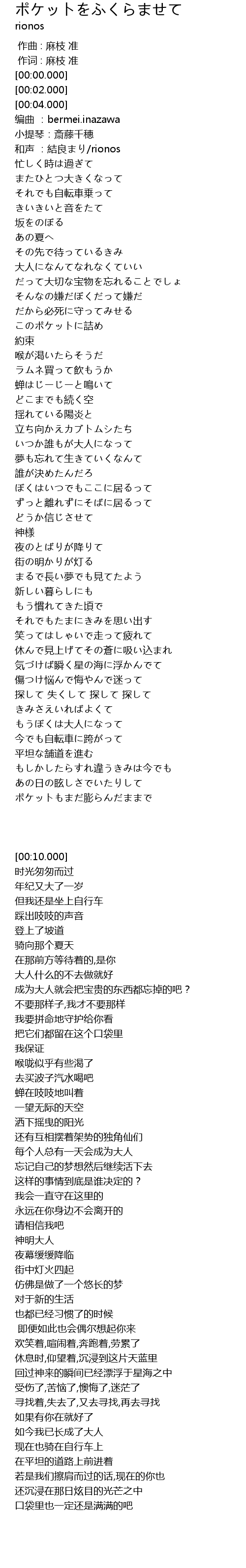 | [00:06.000] | 编曲 :bermei.inazawa |