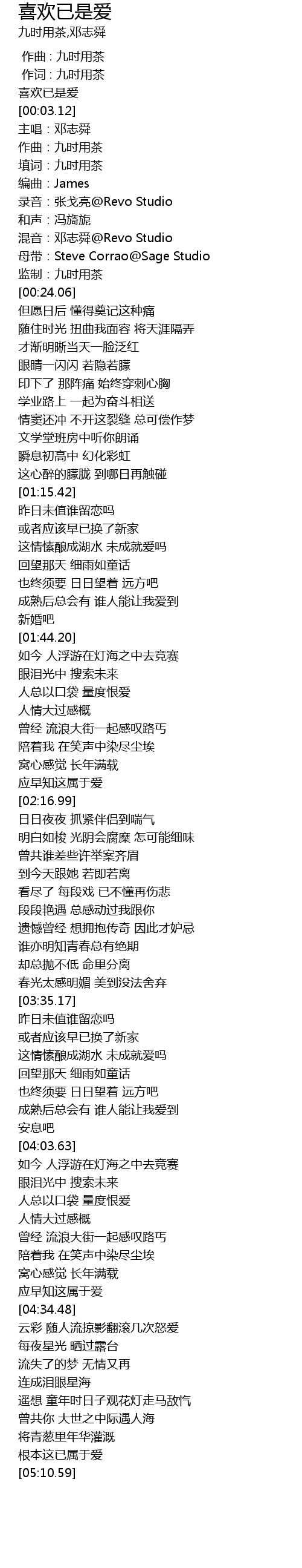 | [00:16.98] | 混音:邓志舜@Revo Studio |