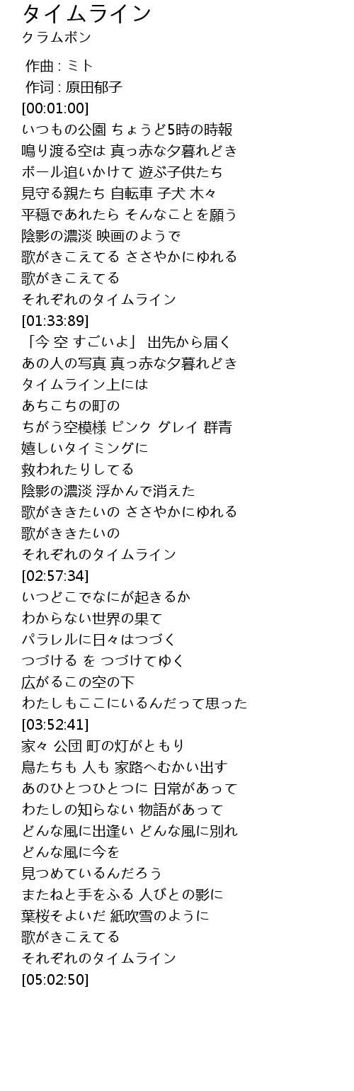 | [04:14:05] | あのひとつひとつに 日常があって |