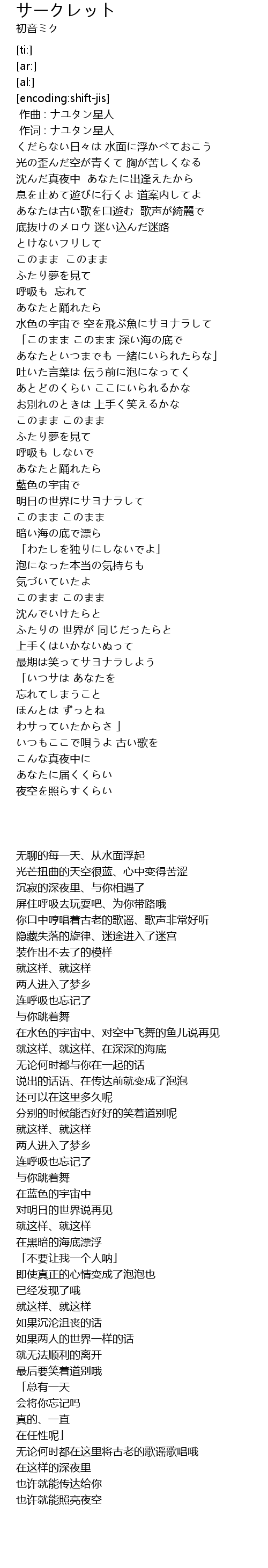 | [00:01.000] | 作词 : ナユタン星人 |