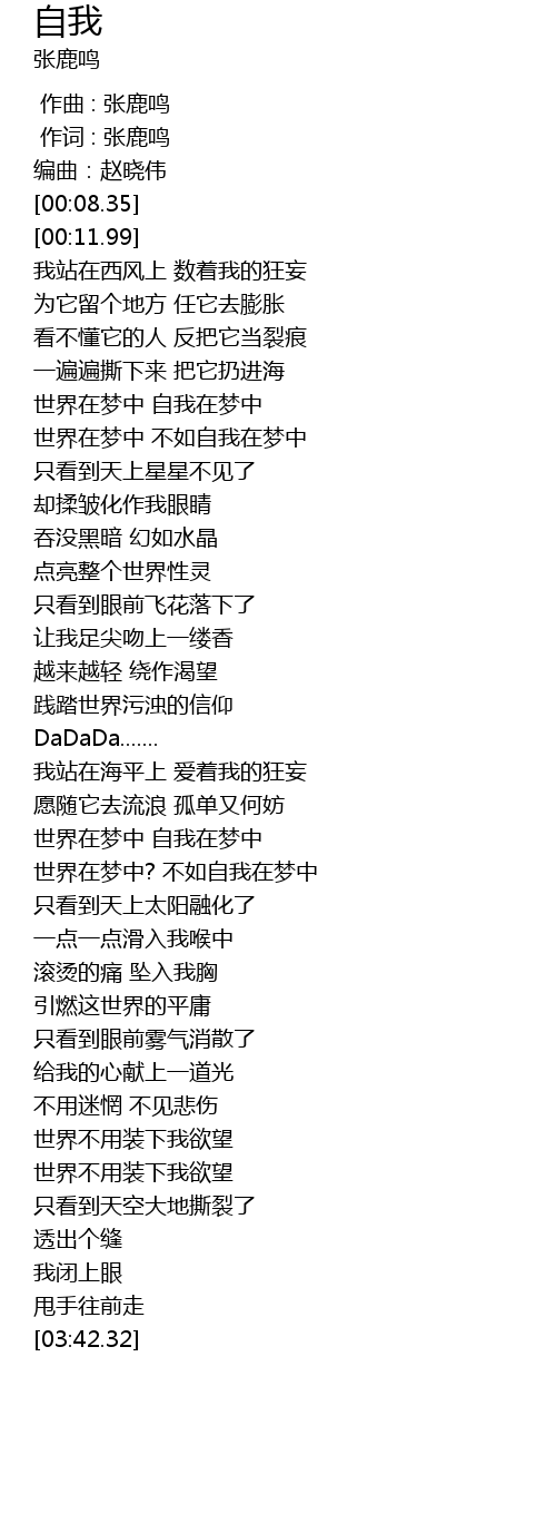 | [00:01.000] | 作词 : 张鹿鸣 |