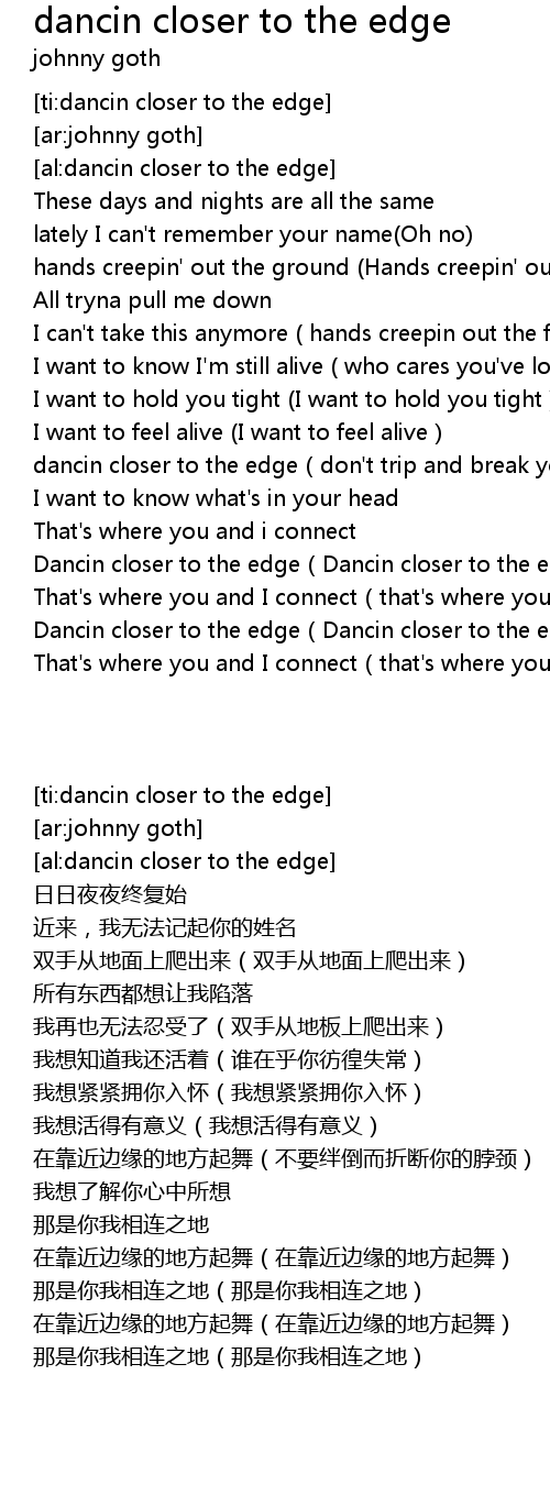 | [02:33.30] | Dancin closer to the edge(Dancin closer to the edge) |