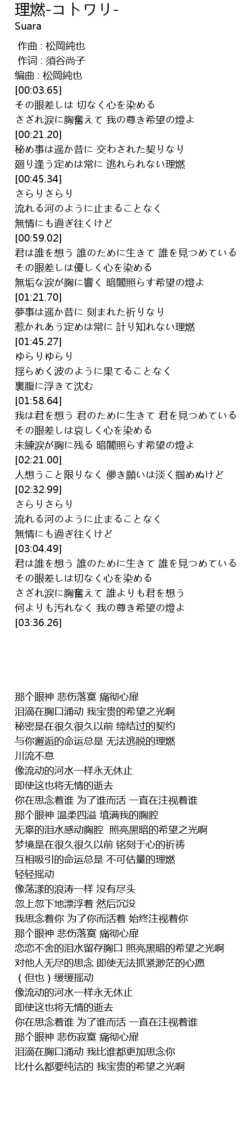 | [01:38.38] | 惹かれあう定めは常に 計り知れない理燃 |