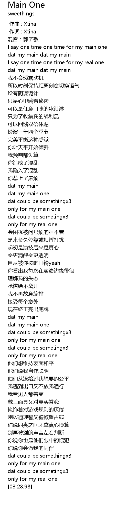 | [03:18.76] | only for my main one |
