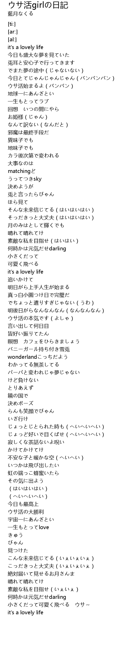 | [00:29.68] | ウサ活始まるよ(バンバン) |