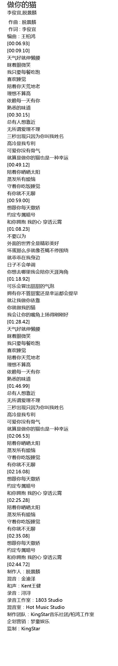 | [00:45.88] | 就算是做你的猫也是一种幸运 |