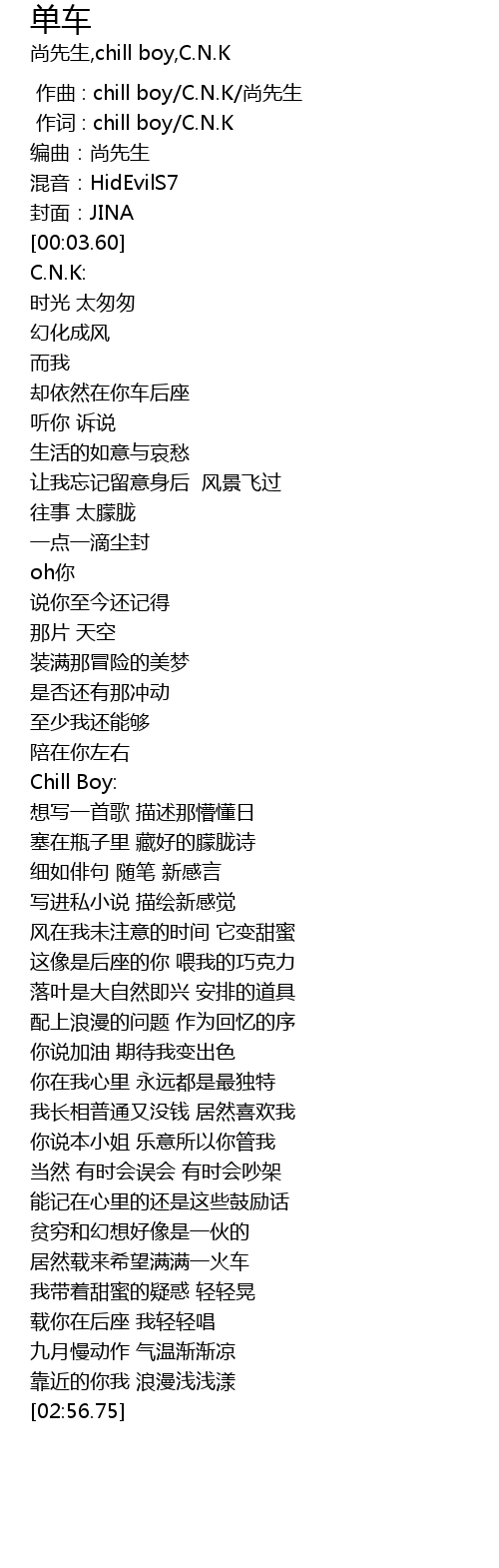 | [00:00.682] | 作词 : chill boy/C.N.K |