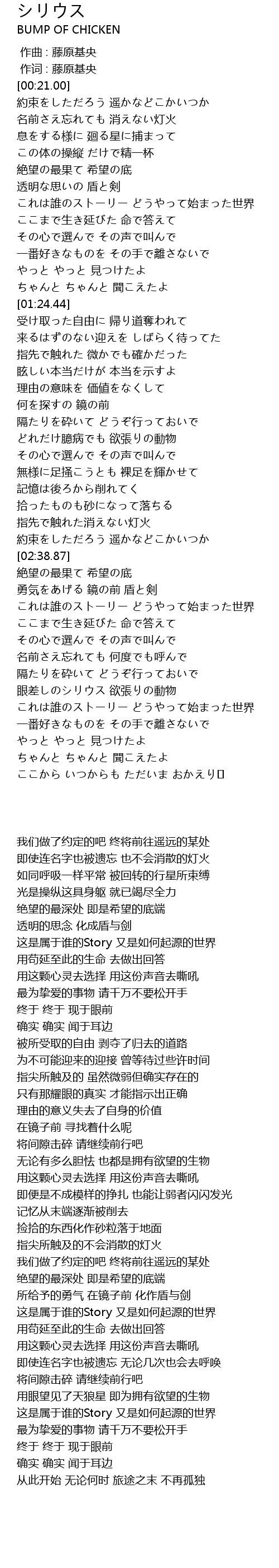 | [03:34.39] | 眼差しのシリウス 欲張りの動物 |