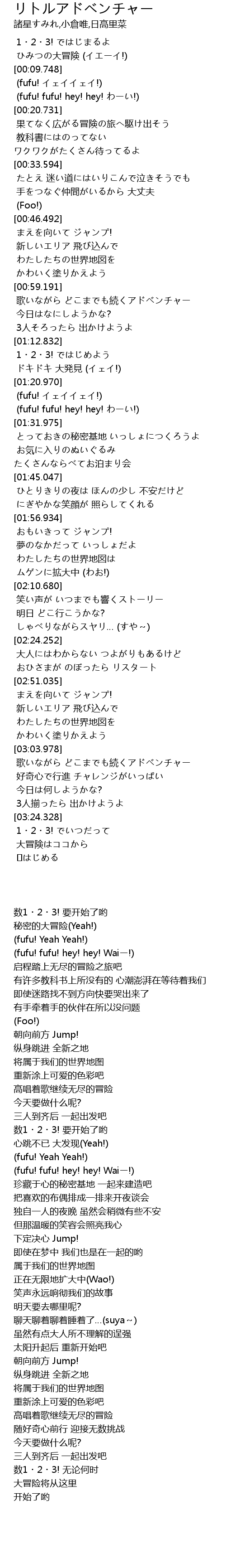 | [03:04.269] | 歌いながら どこまでも続くアドベンチャー |