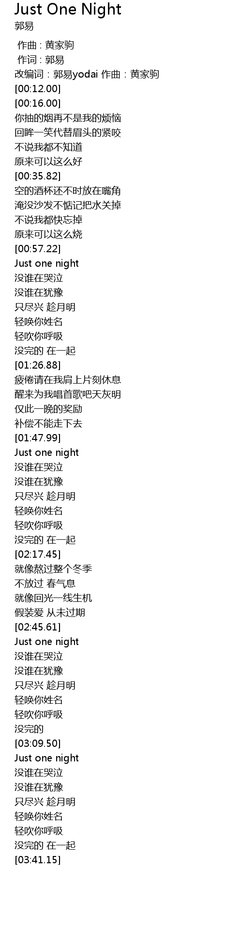 | [00:58.34] | Just one night |