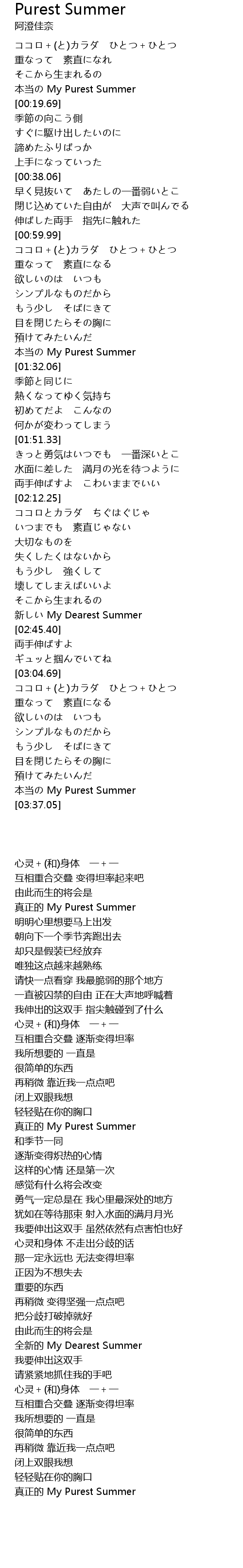 | [03:30.29] | 本当の My Purest Summer |