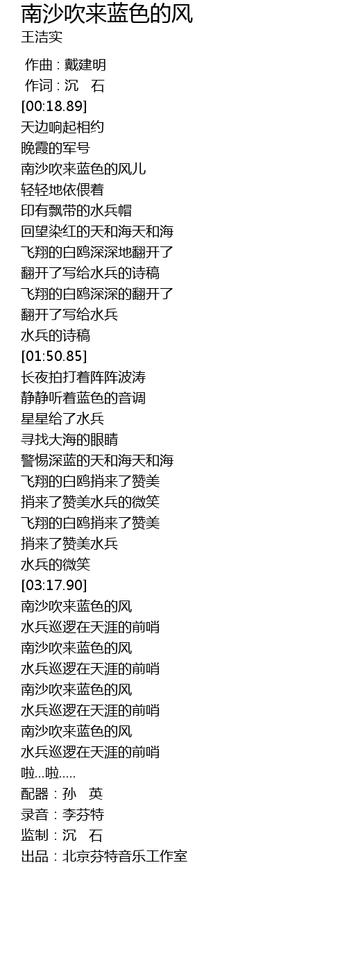| [03:34.43] | 南沙吹来蓝色的风 |
