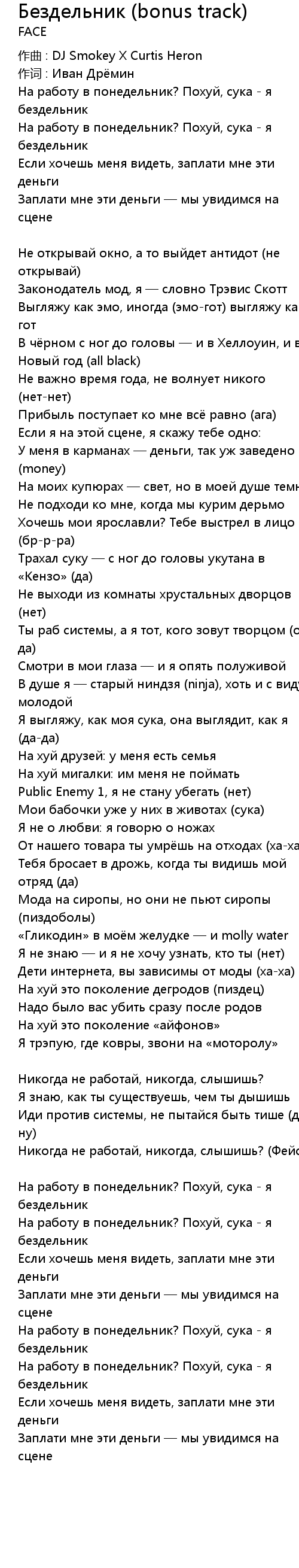 Бездельник (bonus track) bonus track Lyrics