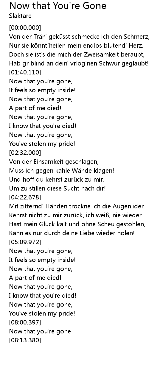 | [04:45.923] | Kehrst nicht zu mir zurück, ich weiß, nie wieder. |