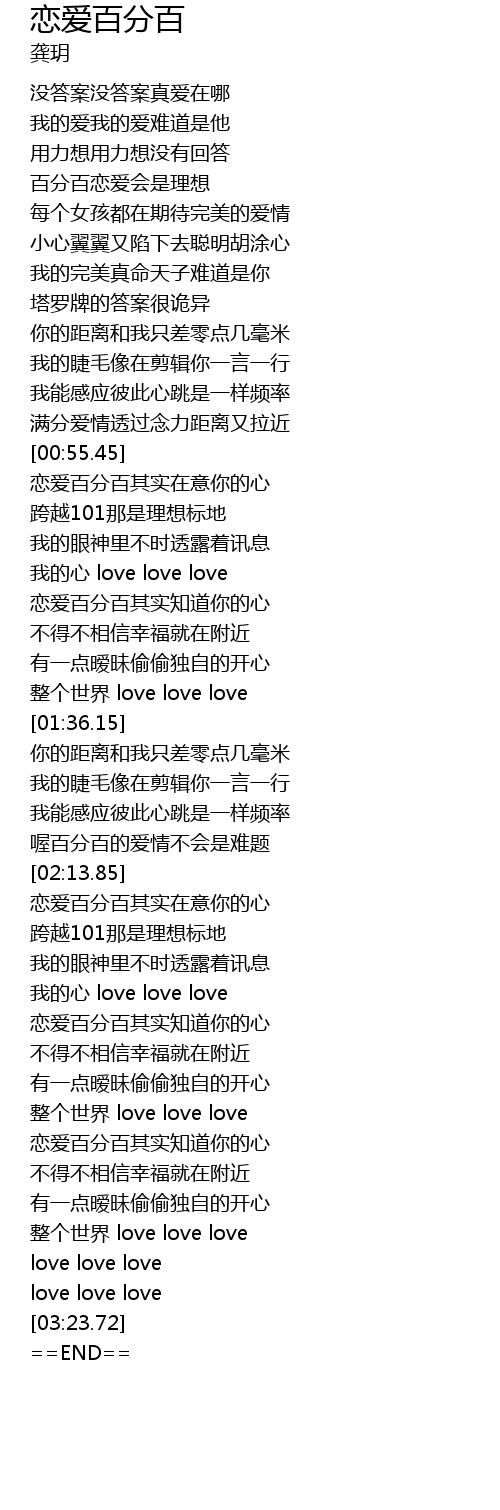 | [02:36.37] | 恋爱百分百其实知道你的心 |