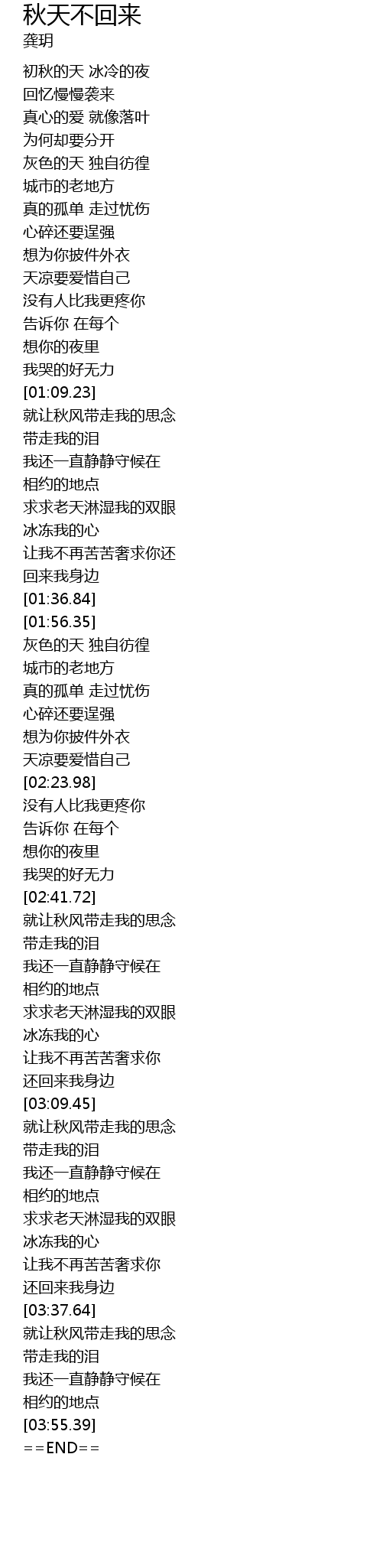 | [03:38.94] | 就让秋风带走我的思念 |