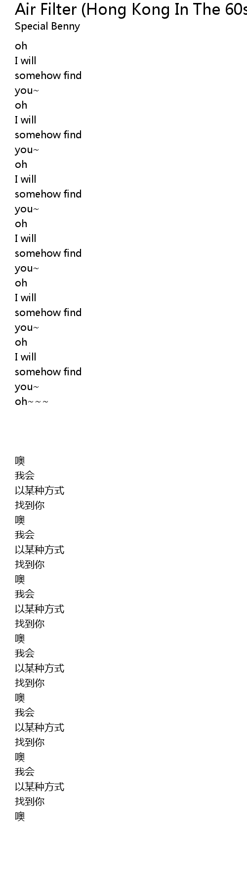 | Song | Air Filter (Hong Kong In The 60s Remix) |