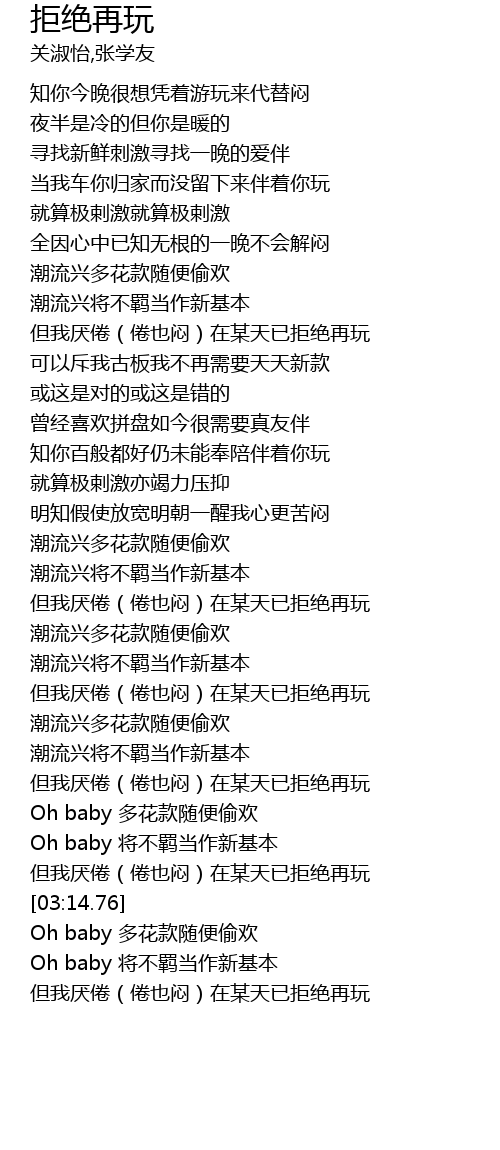 | [03:17.13] | Oh baby 多花款随便偷欢 |