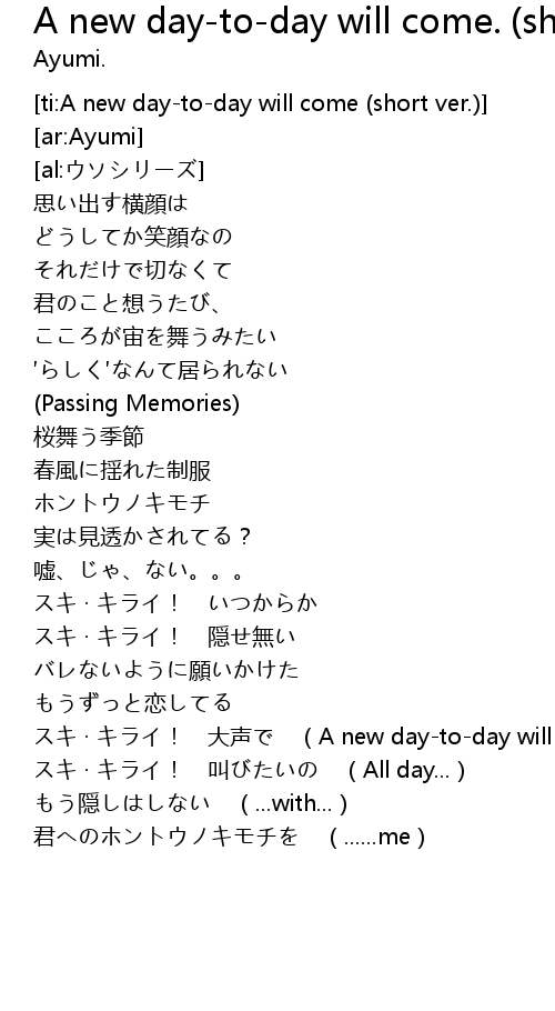 | [ti:A new day-to-day will come (short ver.)] | |