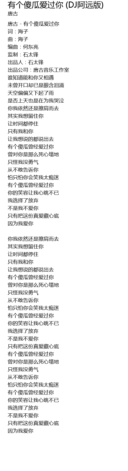 | 唐古 - 有个傻瓜爱过你 | |