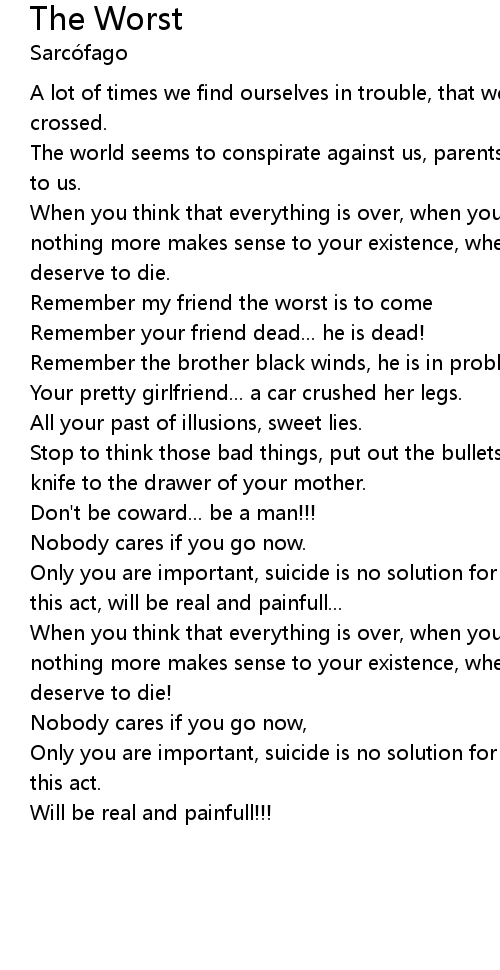 | When you think that everything is over, when you stop to believe in life, when nothing more makes sense to your existence, when you start to think that you deserve to die! | |