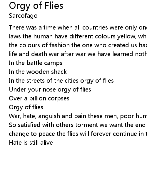 | So satisfied with others torment we want the end of this world never will give change to peace the flies will forever continue in their orgy over the corpses | |