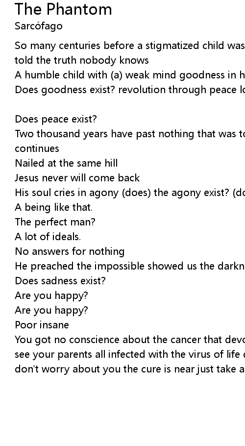 | His soul cries in agony (does) the agony exist? (does) the phantom exist? | |