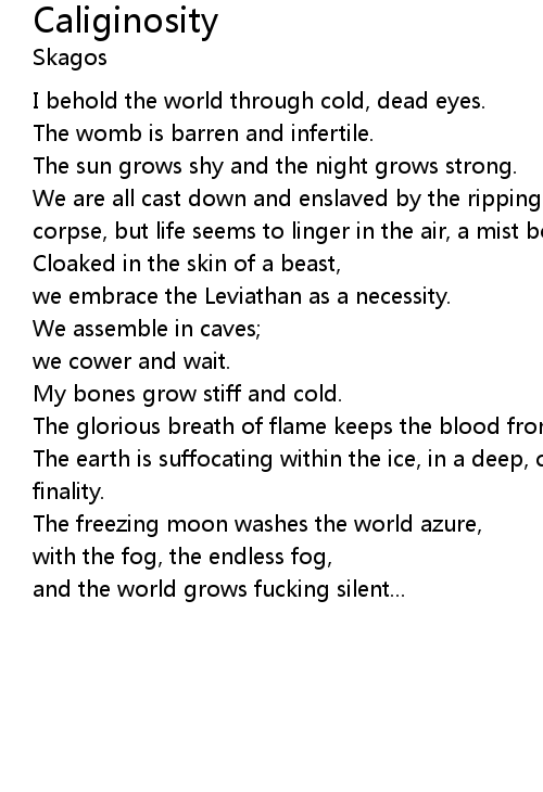| The earth is suffocating within the ice, in a deep, cold sleep, with dreams of finality. | |