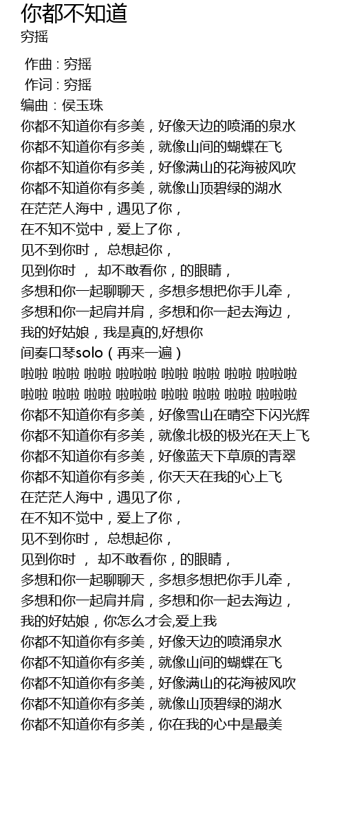 | [00:18.164] | 你都不知道你有多美,好像天边的喷涌的泉水 |