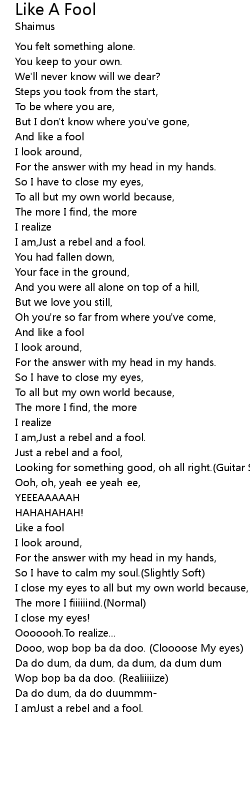 And like a fool |