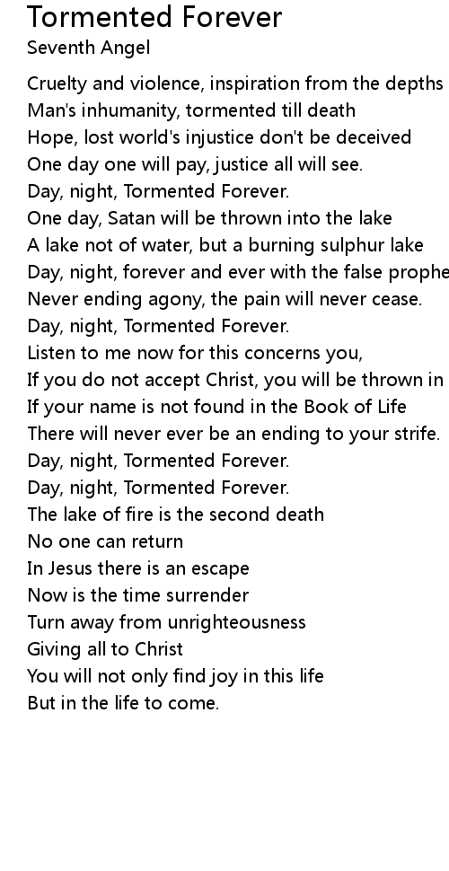 Day, night, Tormented Forever. |
