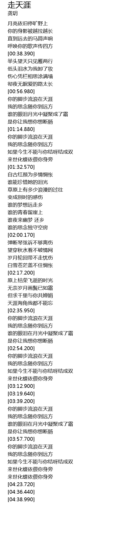 | [02:54.840] | 你的脚步流浪在天涯 |