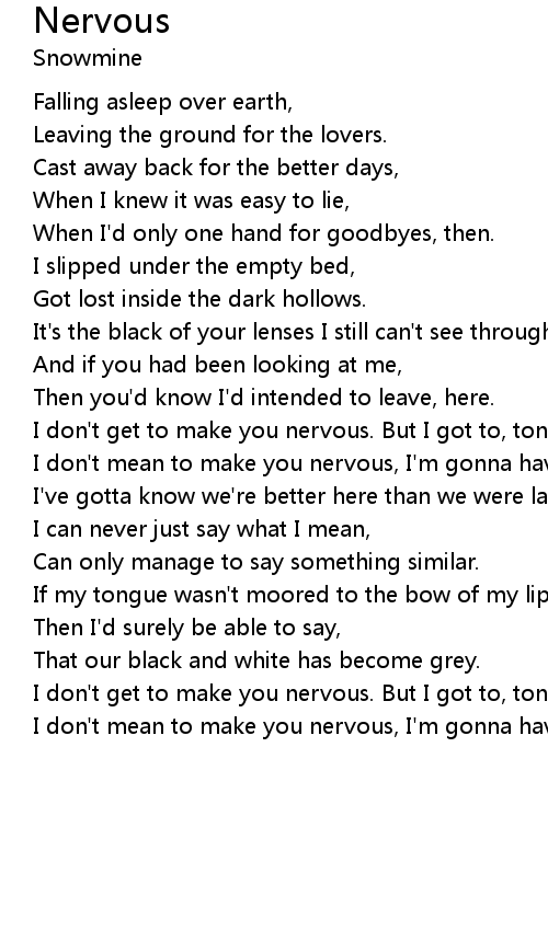 | I don't mean to make you nervous, I'm gonna have to, this time |