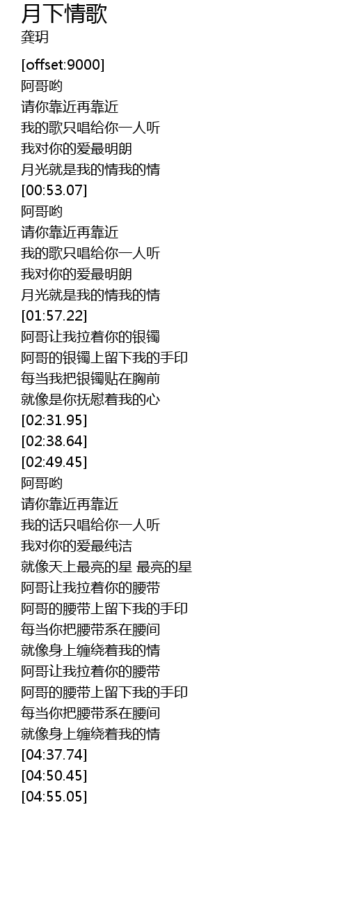 | [00:44.80] | yue guang jiu shi wo de qing wo de qing |