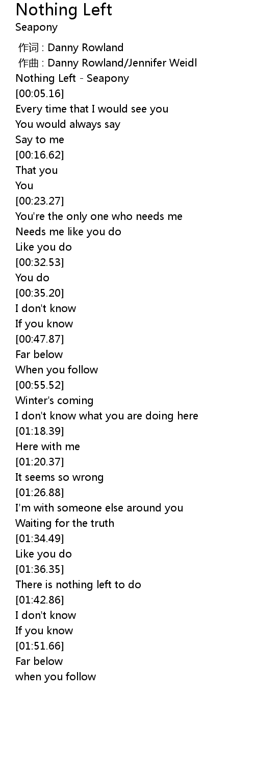 | [00:00.00] | Nothing Left Seapony |