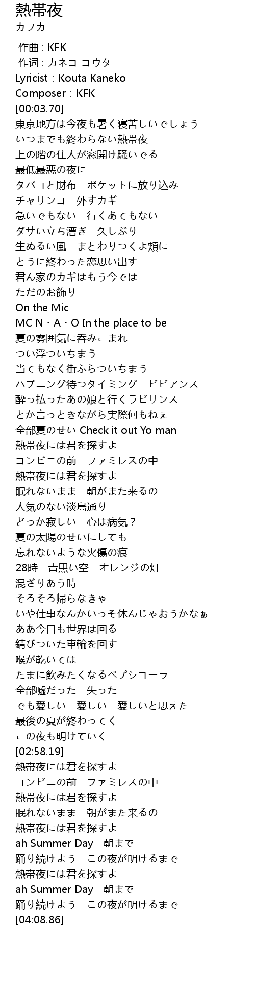 | [00:42.58] | いつまでも終わらない熱帯夜 |