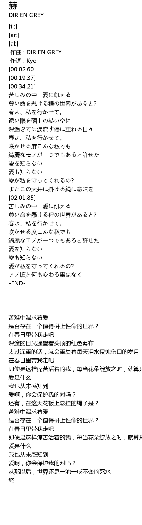 | [00:00.000] | 作曲 : DIR EN GREY |