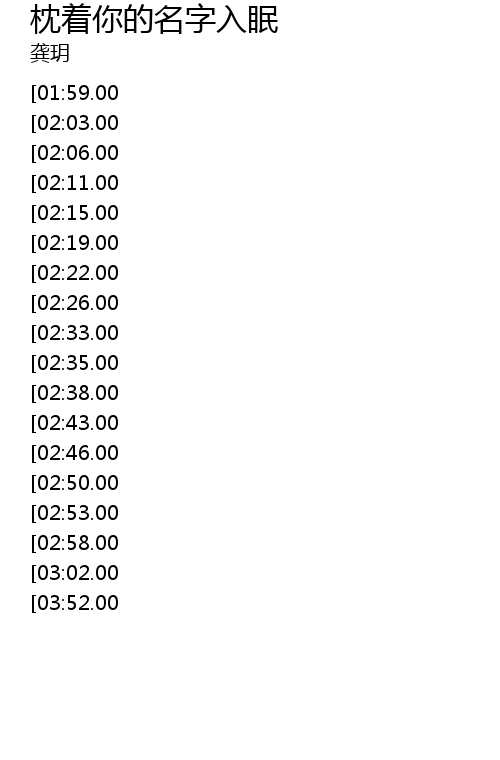 | [01:26.00][02:50.00][04:10.00] | 我会枕着你的名字入眠 |