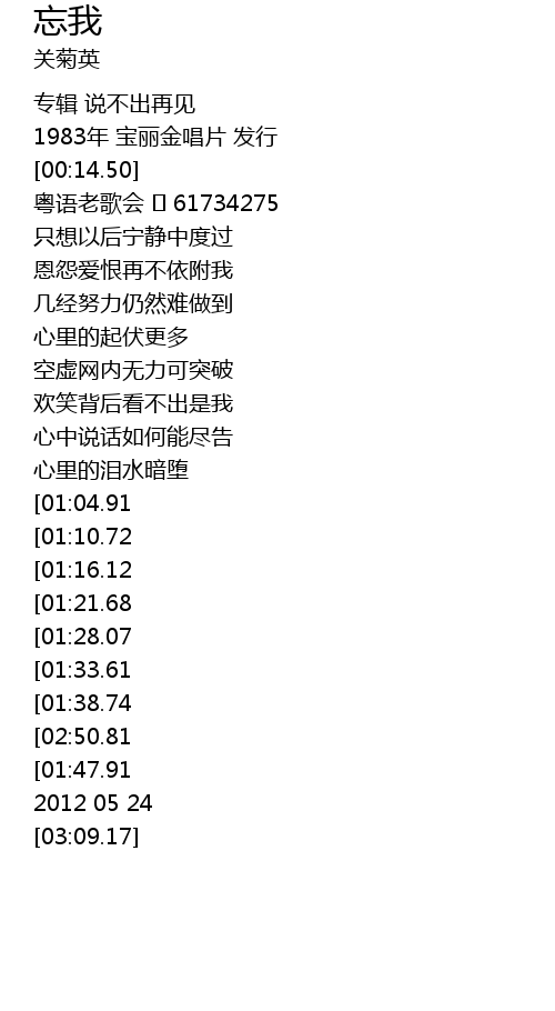 | [00:18.43] | 粤语老歌会 61734275 |