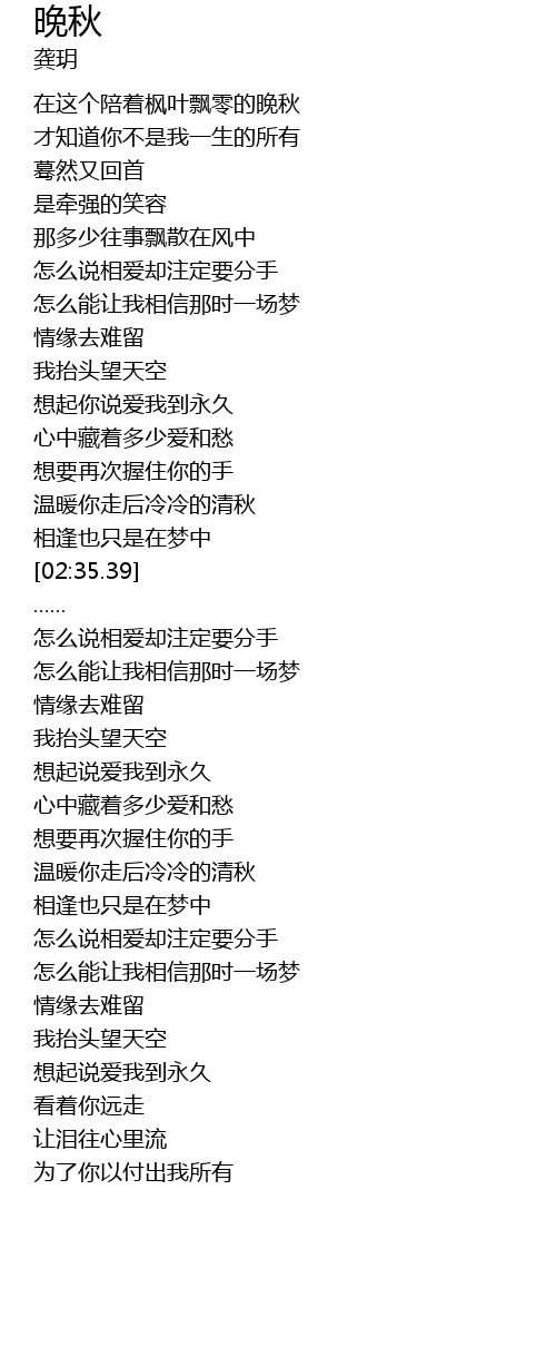 | [02:22.90] | 温暖你走后冷冷的清秋 |