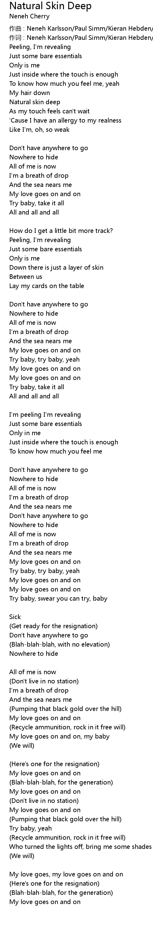 | 作词 : Neneh Karlsson/Paul Simm/Kieran Hebden/Cameron McVey | |