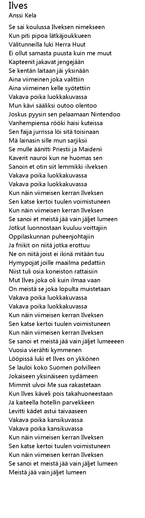 | [02:18.23] | Kun n in viimeisen kerran Ilveksen |