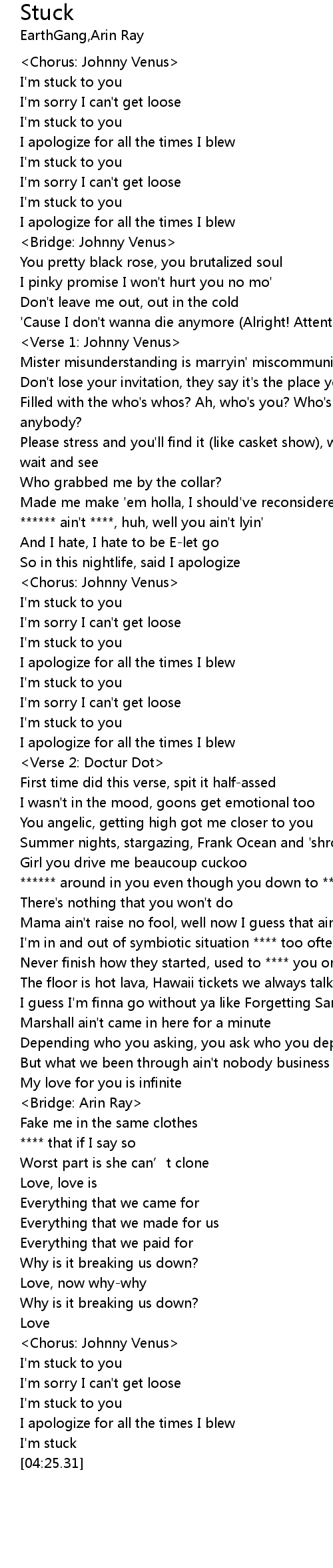 | [02:46.38] | ****** around in you even though you down to **** ******* too |