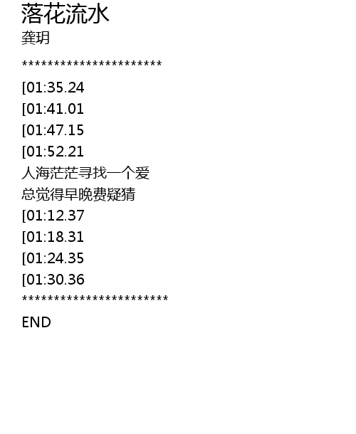 | [02:41.18][01:35.24][00:47.18][00:23.19] | 我象落花随着流水 |