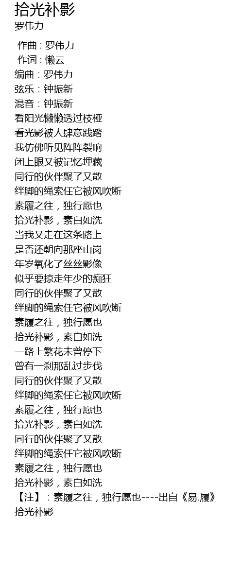 | [04:19.92] | 【注】:素履之往,独行愿也----出自《易.履》 |